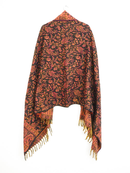 Blanket Scarf / Shawl / Throw - Black Orange and Pink Paisley