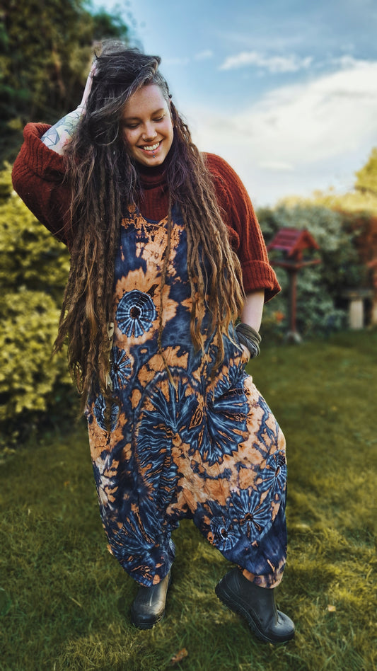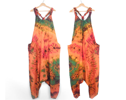 Tie-Dye Harem Dungarees - Bright Orange Rainbow