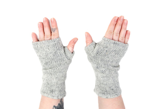 Fleece Lined Knitted Wrist Warmers - Light Grey
