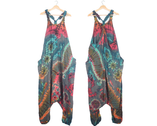 Tie-Dye Harem Dungarees - Grey/Blue Rainbow