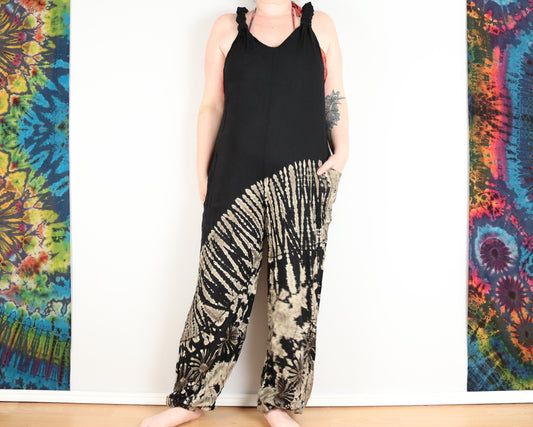 Tie-Dye Harem Dungarees - Orange Black and White