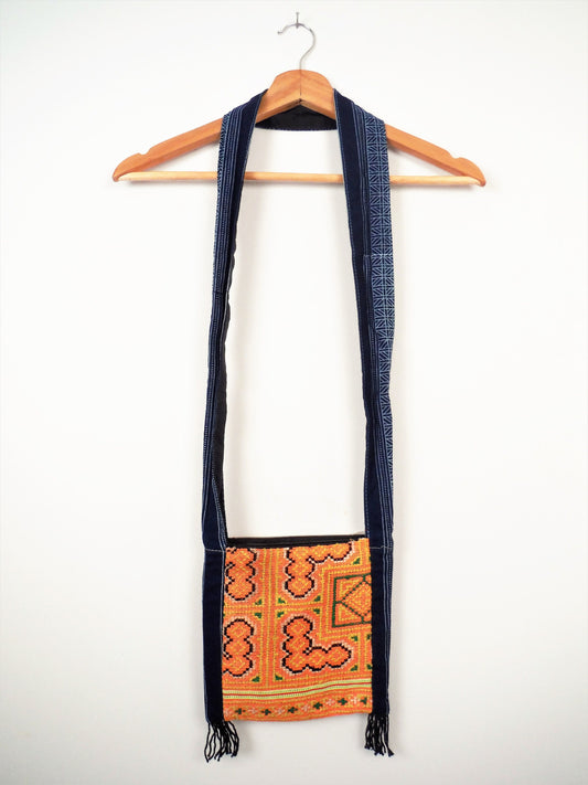 Cross Stitch and Patchwork Small Shoulder Bag - Orange