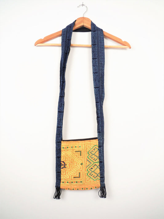 Cross Stitch and Patchwork Small Shoulder Bag - Yellow