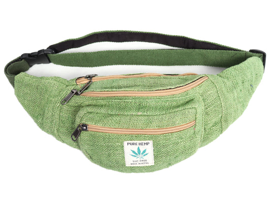 Hemp Bum Bag / Zip-up Belt Bag - Green