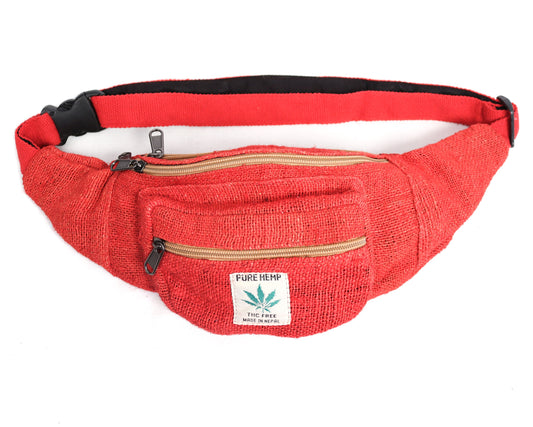 Hemp Bum Bag / Zip-up Belt Bag - Red