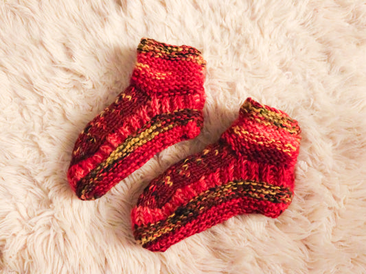 Fleece Lined Slipper Socks Ankle Length Adult Booties - Red Rust Unisex