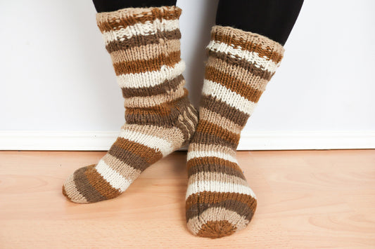 Long Cosy Knitted Sofa Socks - Cream and Brown