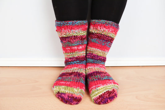 Fleece Lined Cosy Sofa Socks - Pink and Blue
