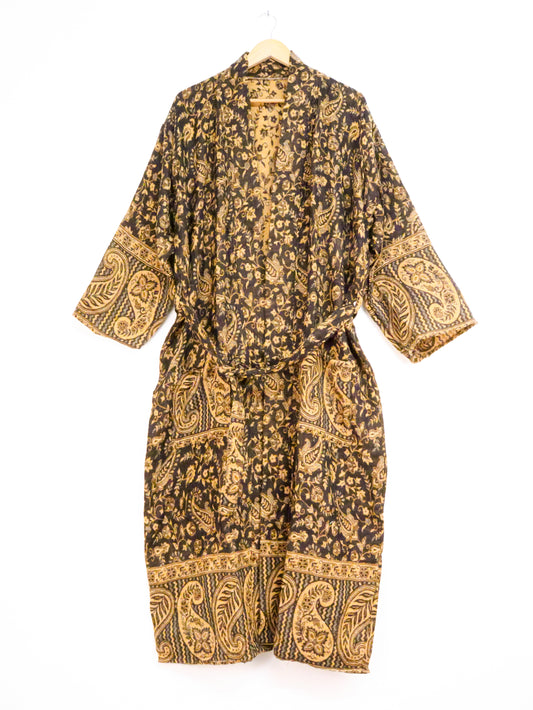Blanket Kimono Robe Boho Dressing Gown - Black and Gold