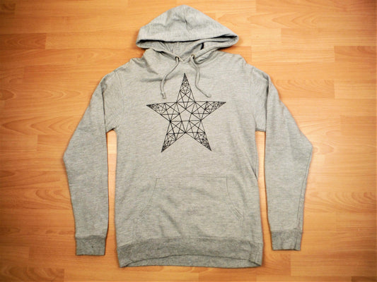 Hand Drawn Geometric Fractal Star Hoodie - Grey Small