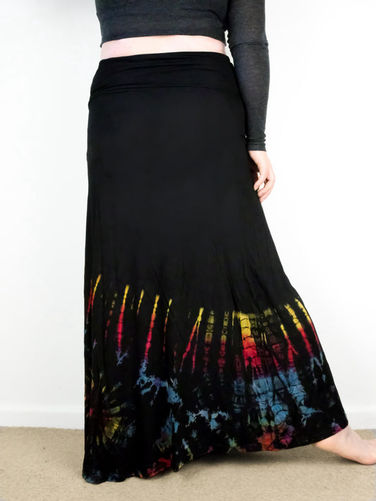 Soft Stretch Tie Dye Maxi Skirt - Black and Half Rainbow