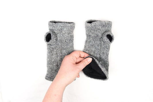 Fleece Lined Knitted Wrist Warmers - Light Grey