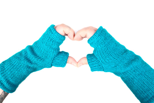 Fleece Lined Knitted Wrist Warmers - Turquoise
