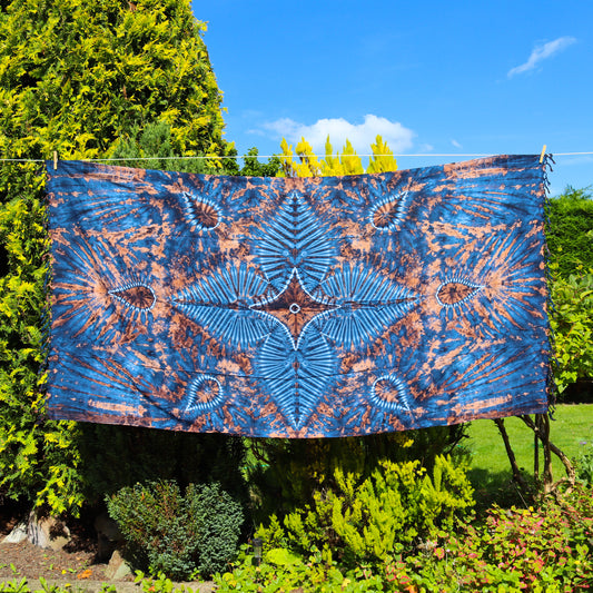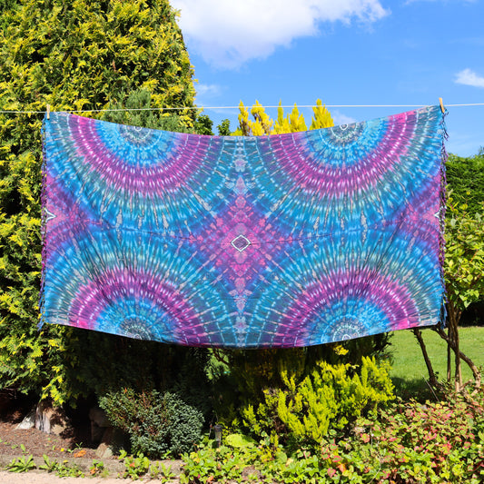 Tie-Dye Sarong / Scarf / Throw - Sky Blue Rainbow Ripples