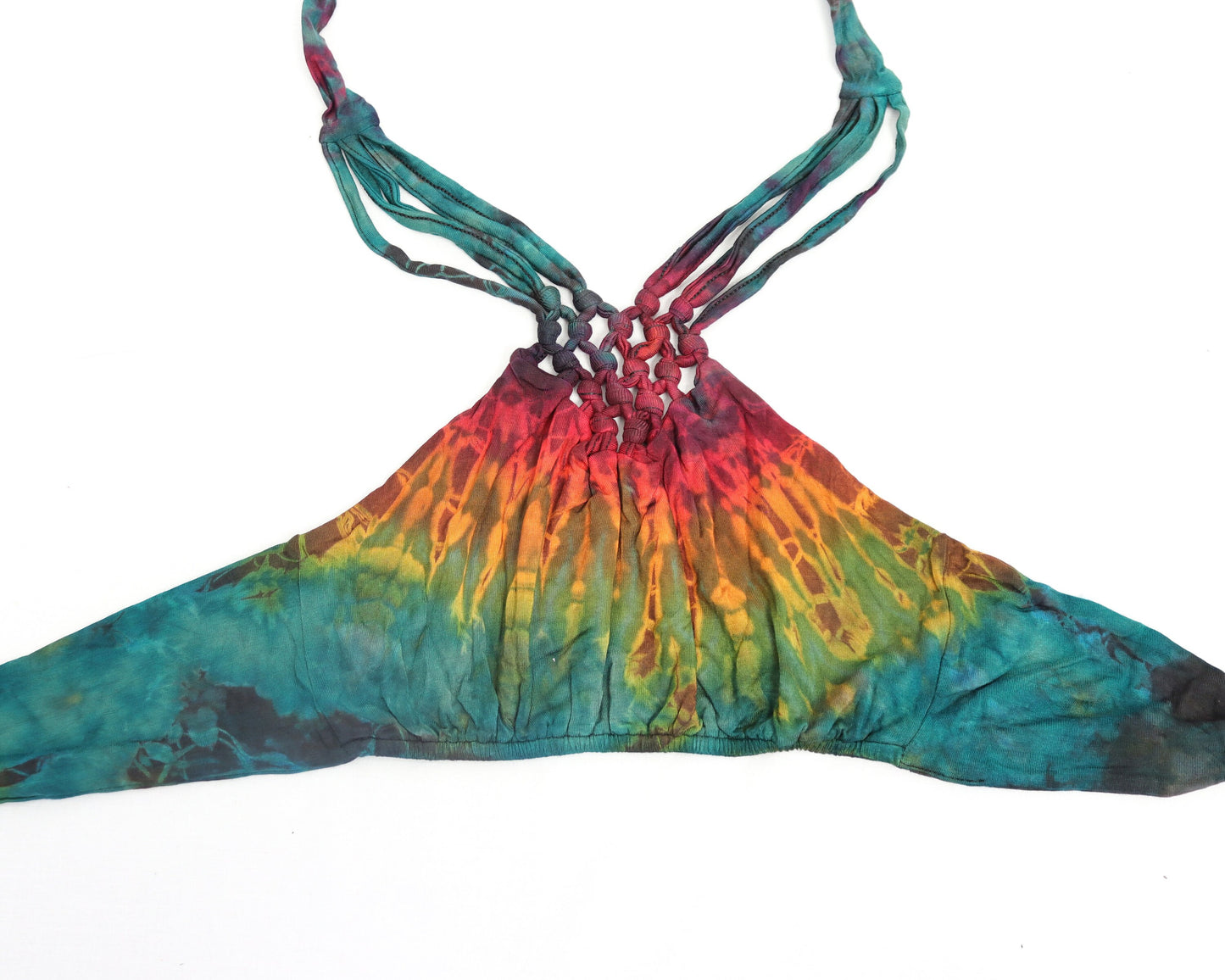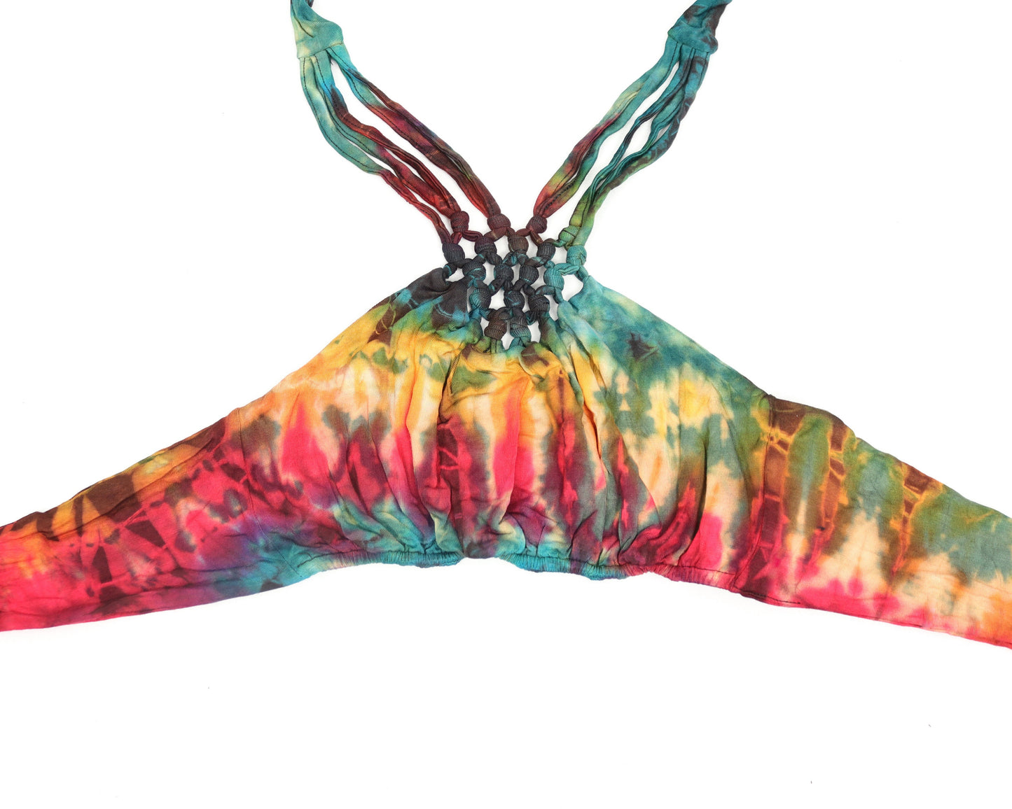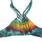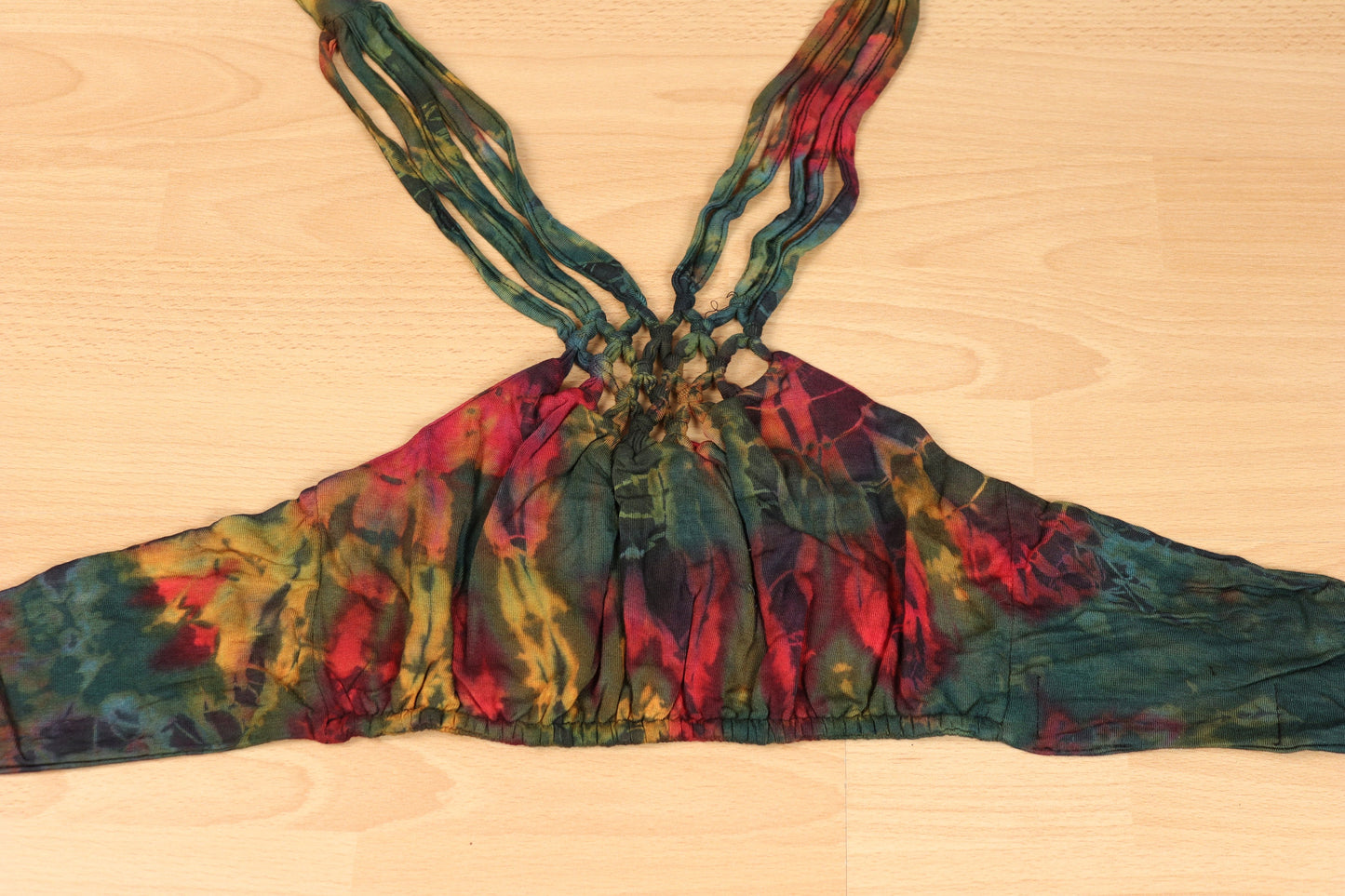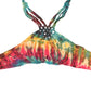 Top de bikini con cuello halter y entramado Tie-Dye - Verde, rojo y amarillo