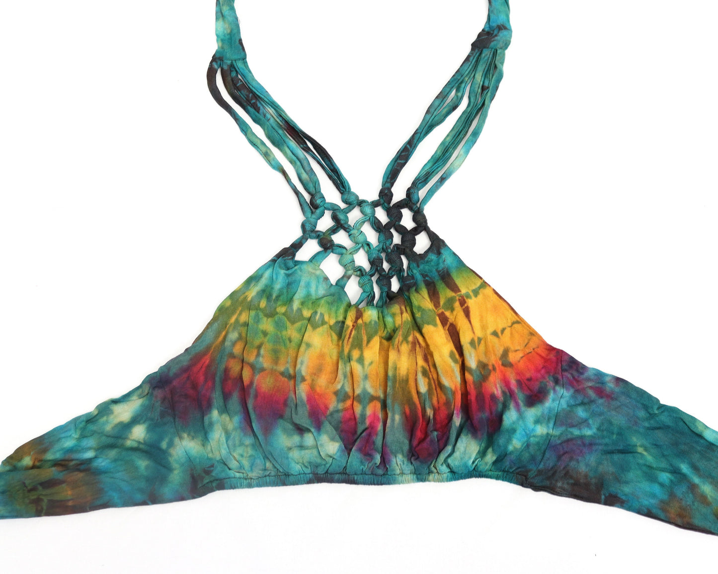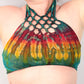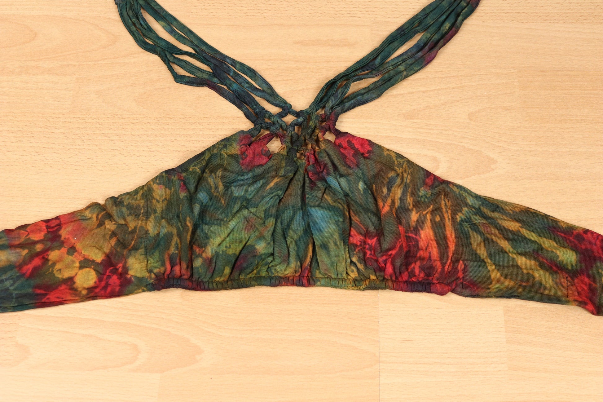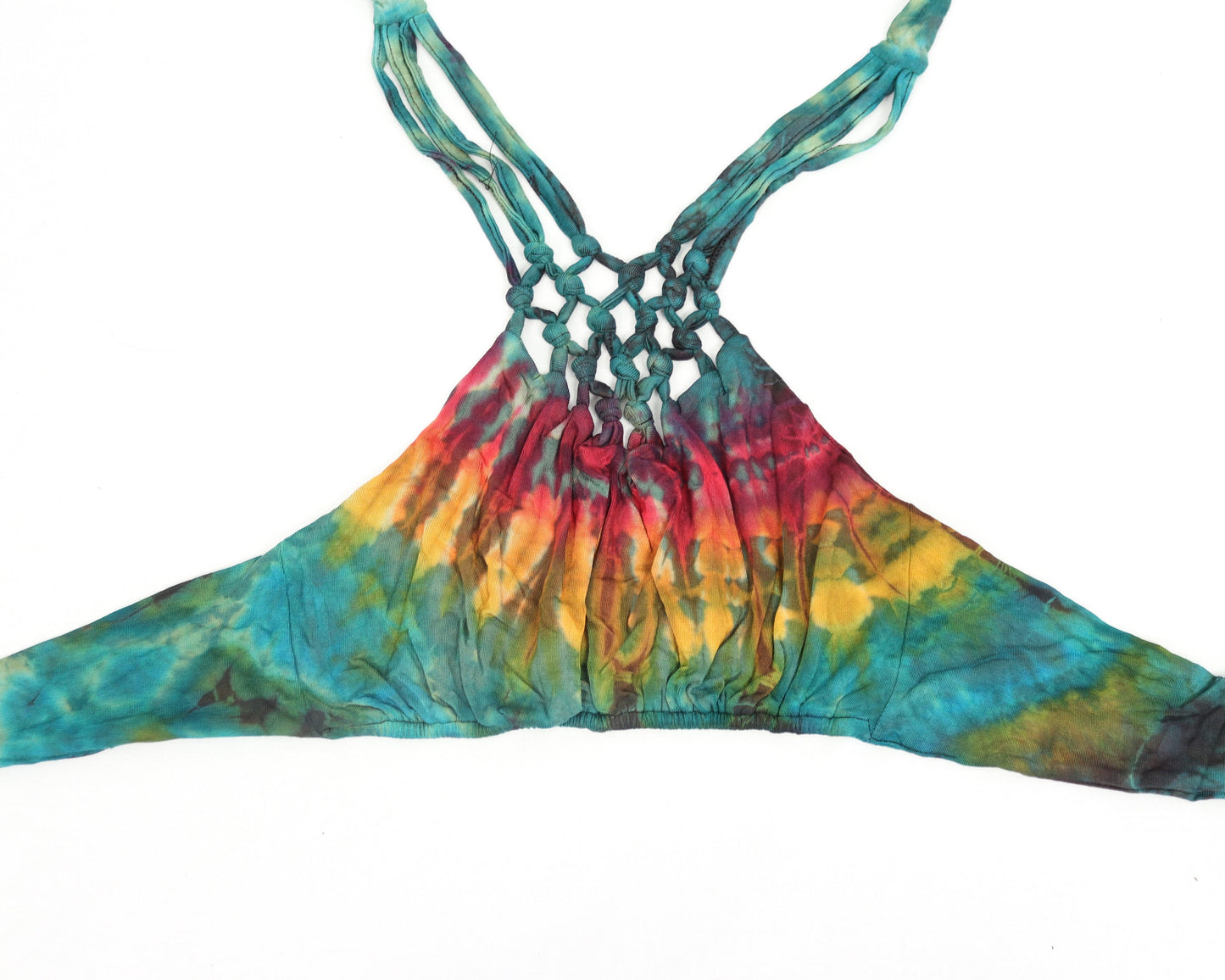 Top de bikini con cuello halter y entramado Tie-Dye - Verde, rojo y amarillo
